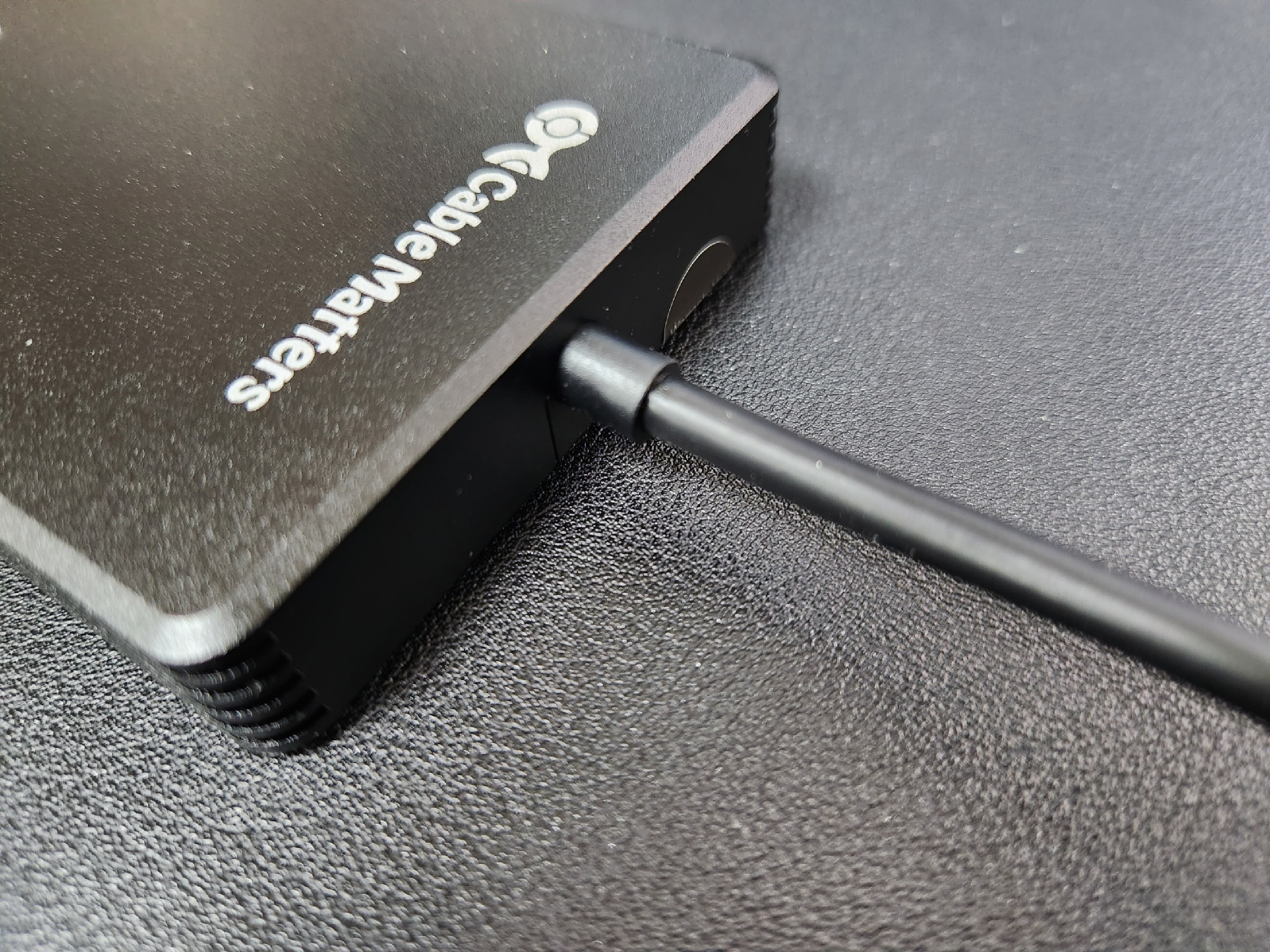 이 제품의 유일한 단점이라고 볼 수 있는 일체형 케이블입니다. USB C 타입 케이블은 보통 소모성이고 잦은 탈착이 이루어지면서 자연스레 접촉 불량이 발생하게 될텐데 이 제품의 경우 그런 접촉 불량 문제가 발생하게 된다면 난감해질듯 하네요. 그래서 단점이라고 적어보았구요. 다만 연결부위가 튼튼하게 마감이 되어 있어서 의도적으로 저 부분을 해하지 않는 이상 오래오래 사용이 가능할 것 같습니다.