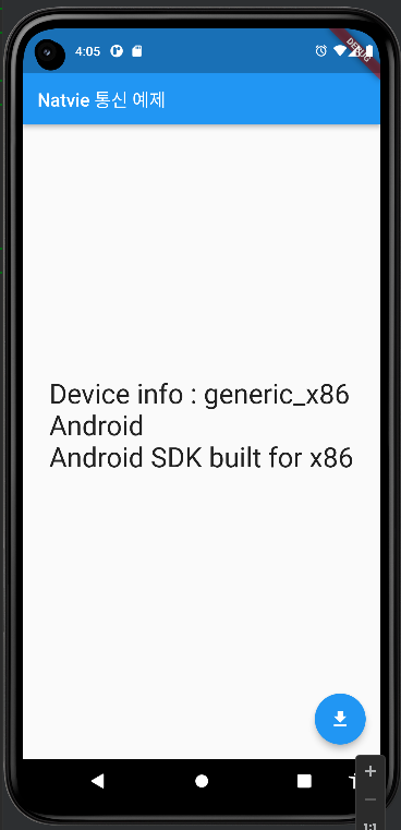 세번째 오류까지 다 수정하고 난 뒤 디바이스 매니저로 구동시킨 안드로이드 에뮬레이터에서 구동된 모습입니다.