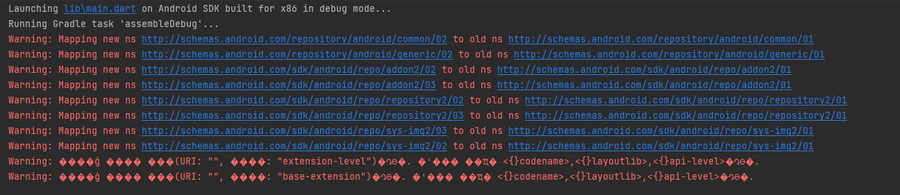Warning: Mapping new ns http://schemas.android.com/repository/android/common/02 to old ns http://schemas.android.com/repository/android/common/01