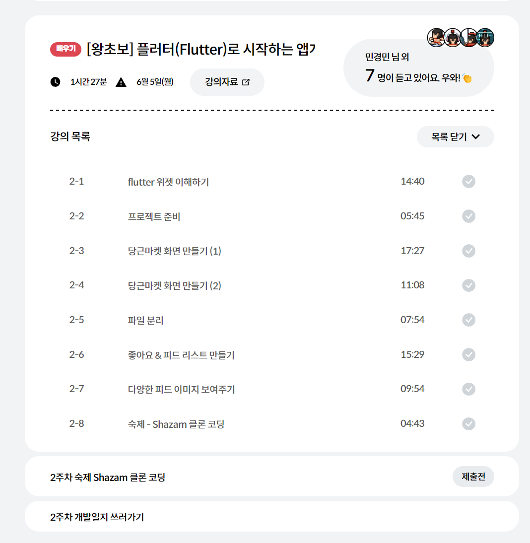 강의 듣기전 까지는 긴가민가 했는데 IT개발 경력이 많다한들 익숙하지 않은 flutter를 능수능란하게 다루려면 익숙해짐이 필요해서 강제로 듣자하고 결제하게 되었습니다. 그리고 2주차 까지 진행했는데 스타르타코딩클럽이라는 이름답게 스파르타 식으로 익숙해지도록 만들어주는데 초점을 두고 있습니다.