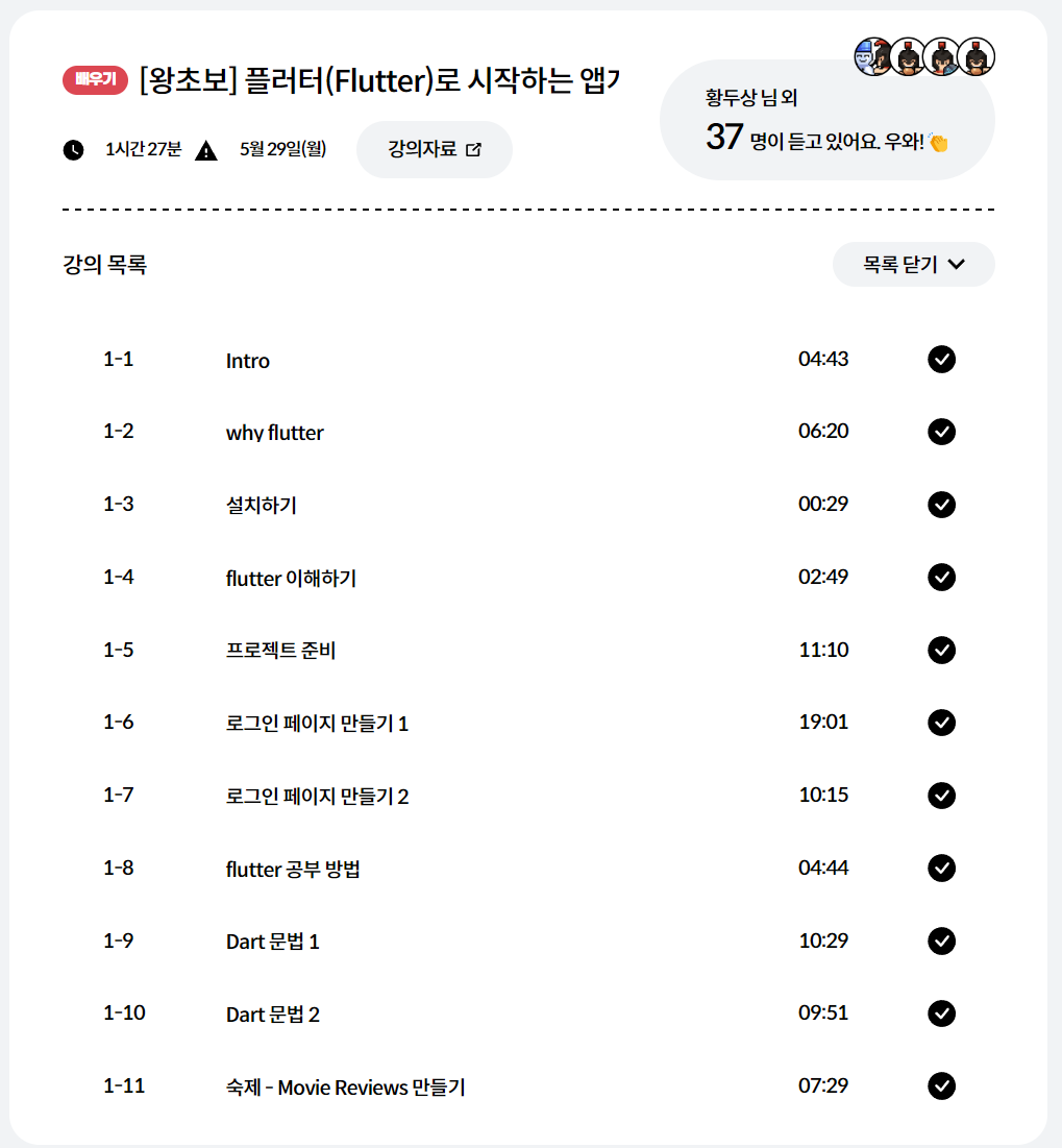 앱 개발 종합반인데 커리큘럼 상 플러터의 모든 걸 맛보지는 못하겠으나 적어도 IDE와 UI 콘트롤에 익숙해지는 시간이 될듯 합니다.