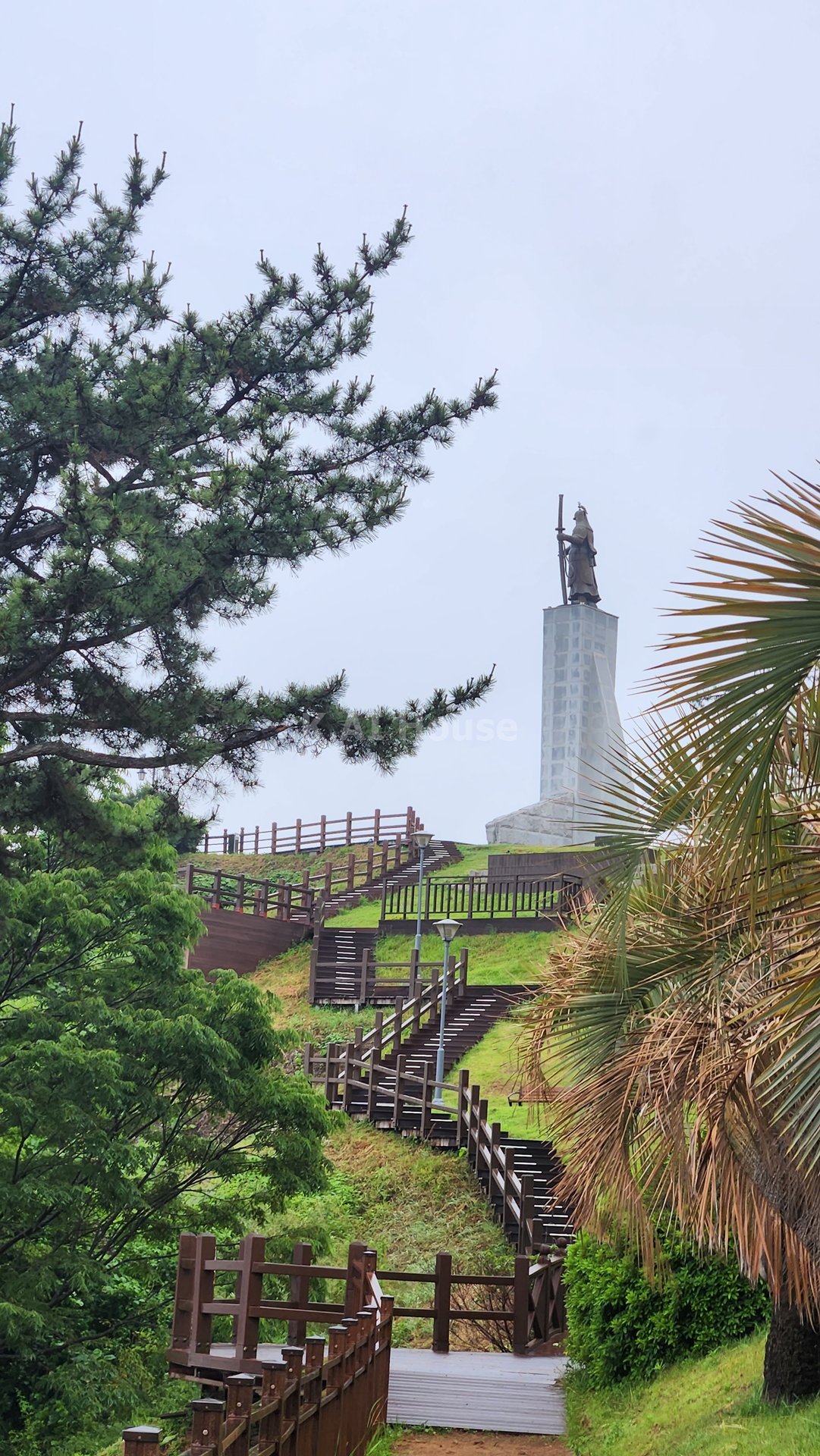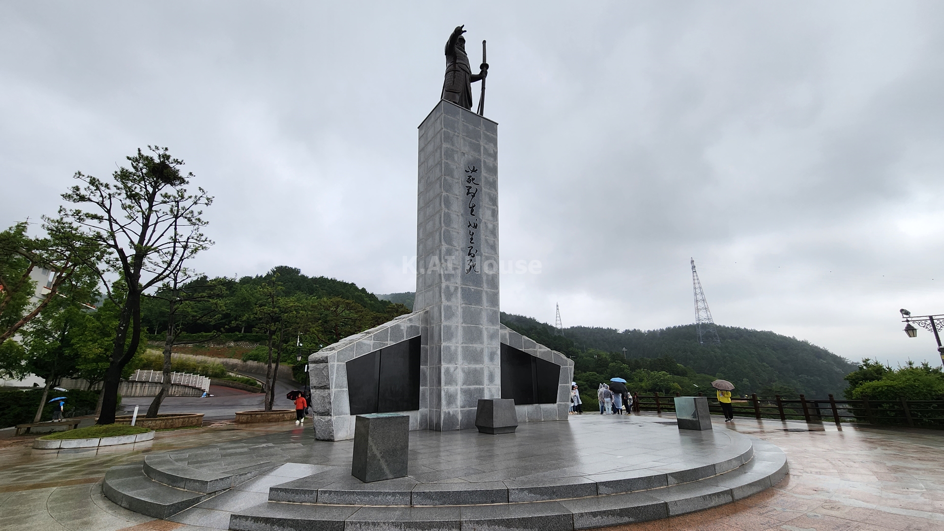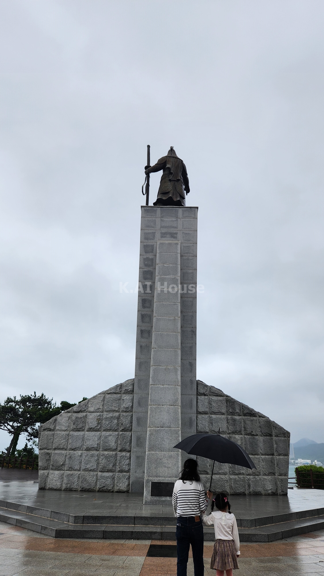 언덕을 올라오니 이순신장군 동상이 보입니다. 굉장히 높은 곳에 동상이 위치해 있는데 웅장함이 느껴집니다. 날씨가 흐리고 비바람이 부는게 NG였지만 막상 와보니 좋더군