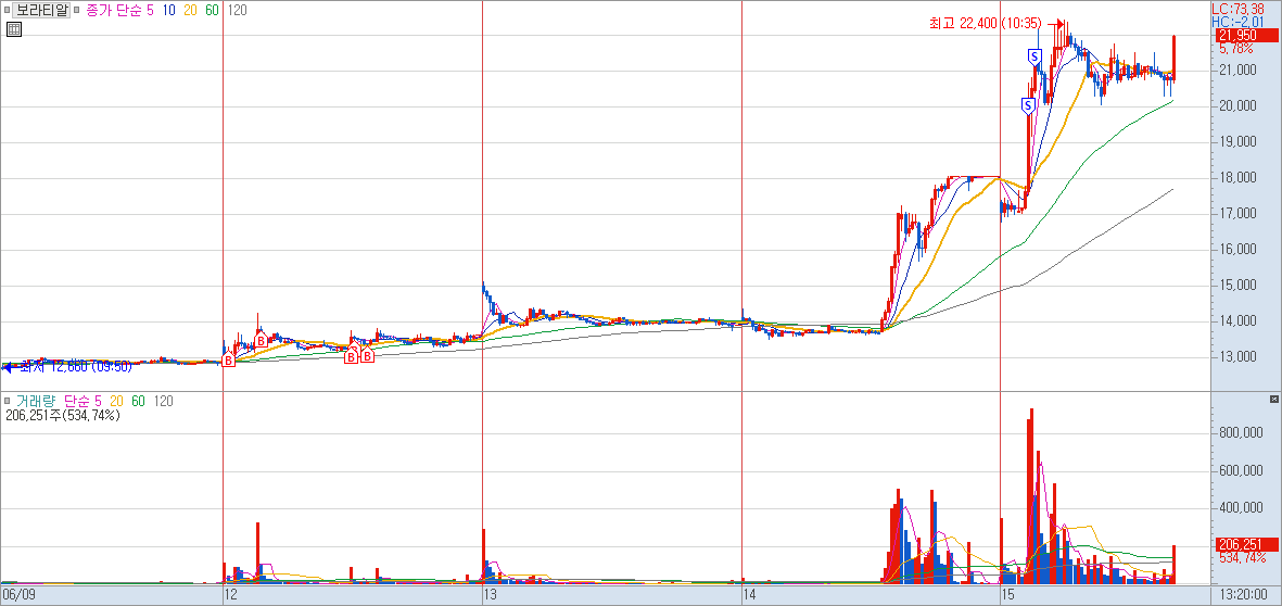 지난주부터 이슈로 부각되었고 이로 인해 수급이 들어오는 종목들이 여럿보였는데 원하는 차트를 만든 종목들중에 페이크를 걸러내는 작업을 거치고 추가적인 돈이 들어오는 모습을 노려보면서 선택한게 신송홀딩스와 보라티알 이었습니다.