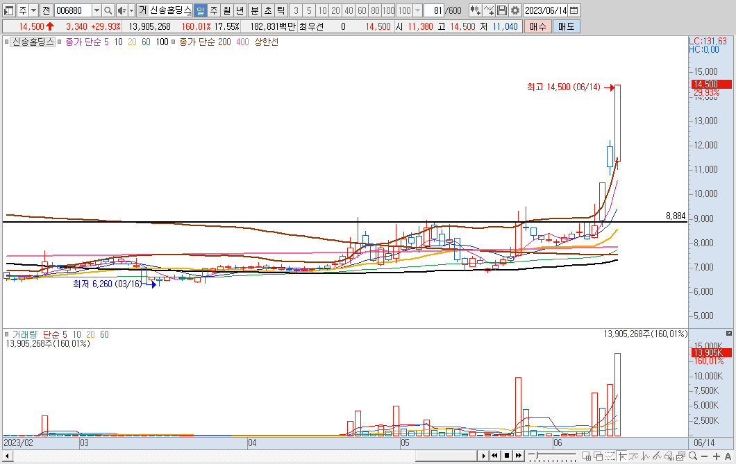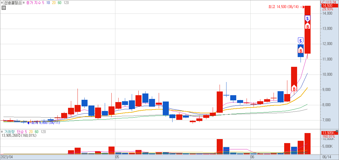 신송홀딩스 진입은 6월 12일 장중에 수급을 보고 진입했습니다. 아래는 신송홀딩스를 매매한 일지입니다.