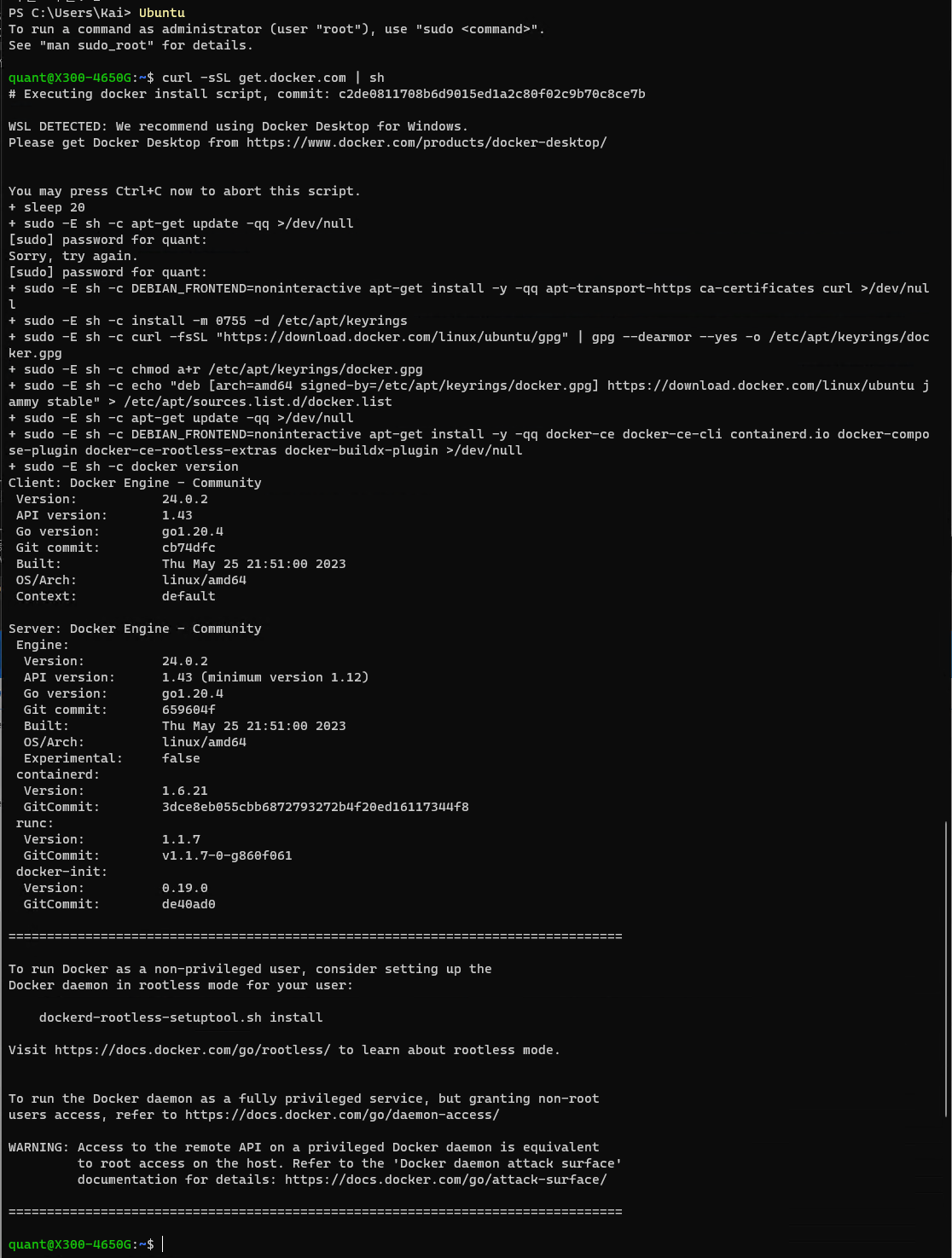 얼마지나지 않아 모든 설치가 완료됩니다. 이렇게 도커 설치까지 끝냈습니다. 정말 쉽네요