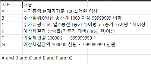 너무 많은 종목들이 검색된다면 검색식의 조건을 좀 더 타이트하게 구성해서 해보실 수 있습니다.