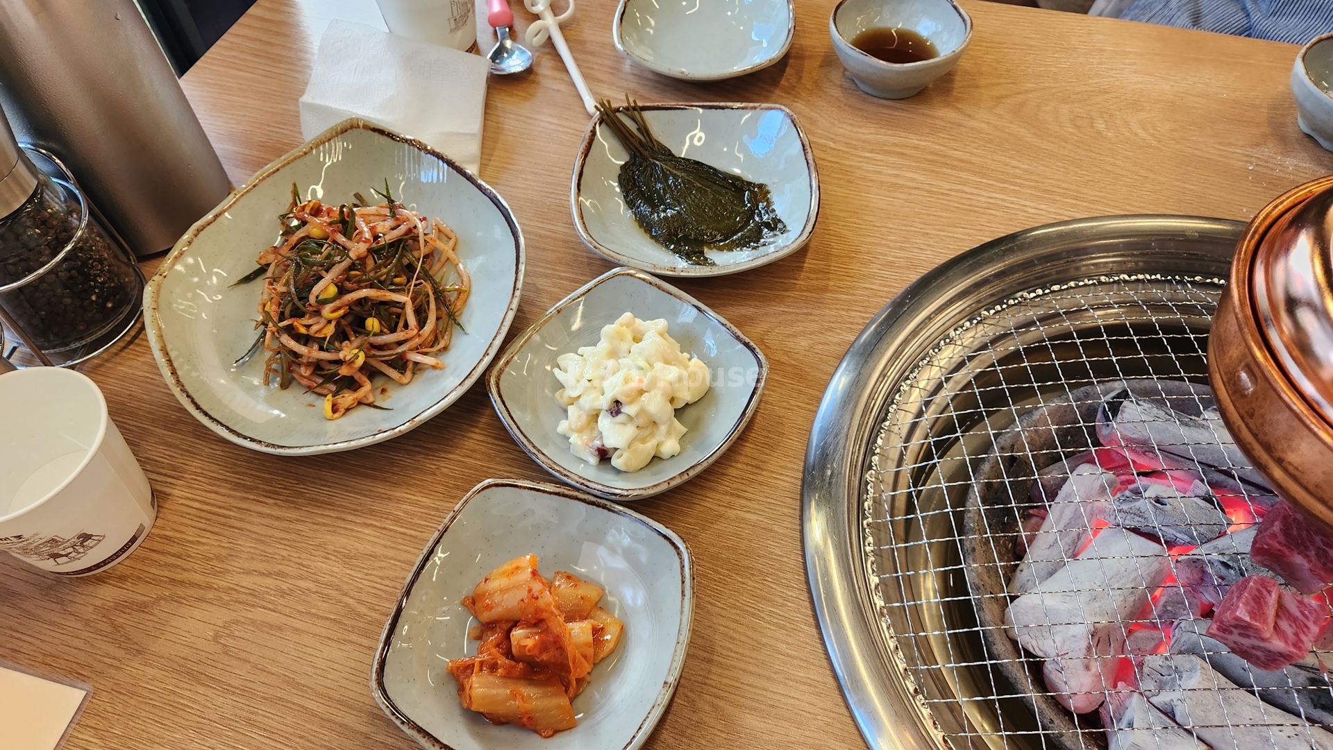 불판을 갈아야겠네라는 생각을 할 때쯤 사장님이 오셔서 불판을 갈아주십니다. 딱히 말씀드리지 않아도 테이블 보시면서 필요한게 없나 스캔을 자주 하십니다. 불판을 또 갈아주려 하시기에 고기도 얼마 안남았고 불판 가신지 얼마되지도 않아 두번째 불판 교체는 사양했습니다.