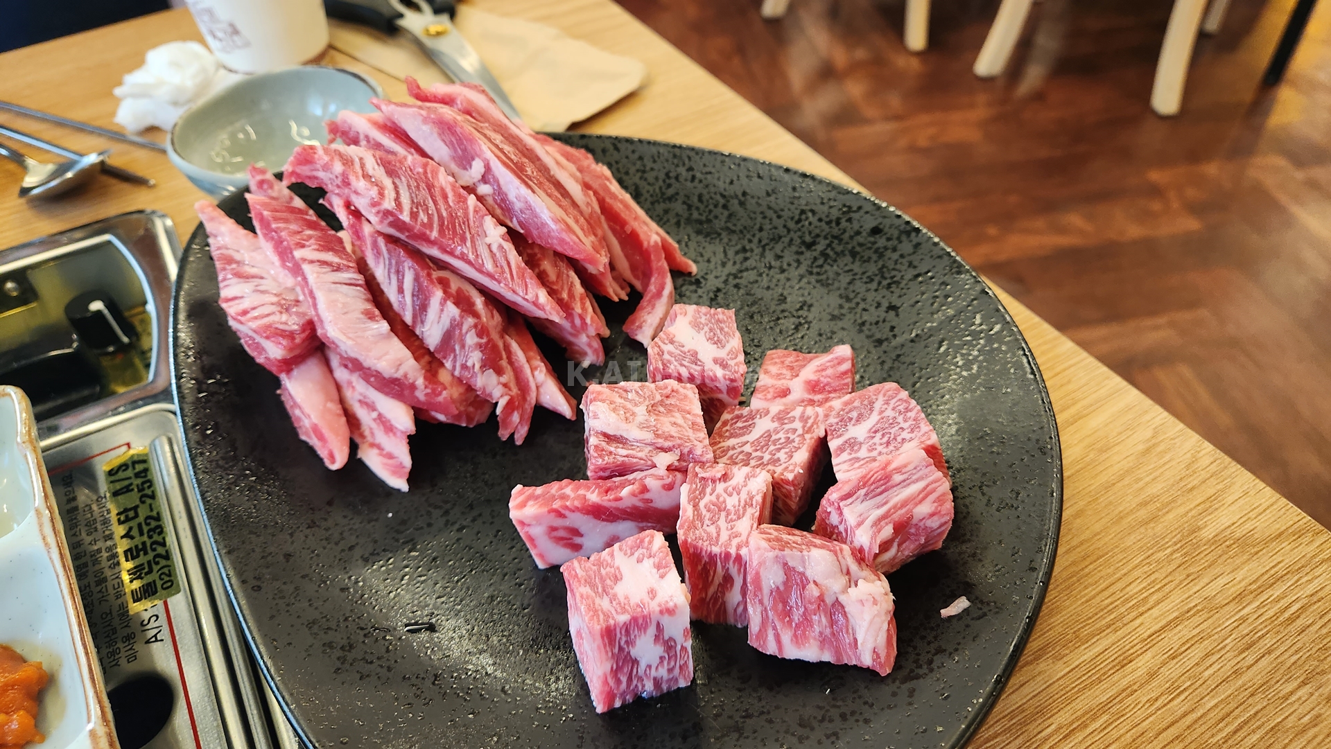소갈비살은 꽃갈비살에 비해 식감은 조금 부드럽지 않지만 갈비살만의 맛이 있어서 그런지 역시 맛있습니다. 꽃갈비살이 없었다면 당연히 소갈비살이 일등자리를 차지했을 것 같은 맛입니다.