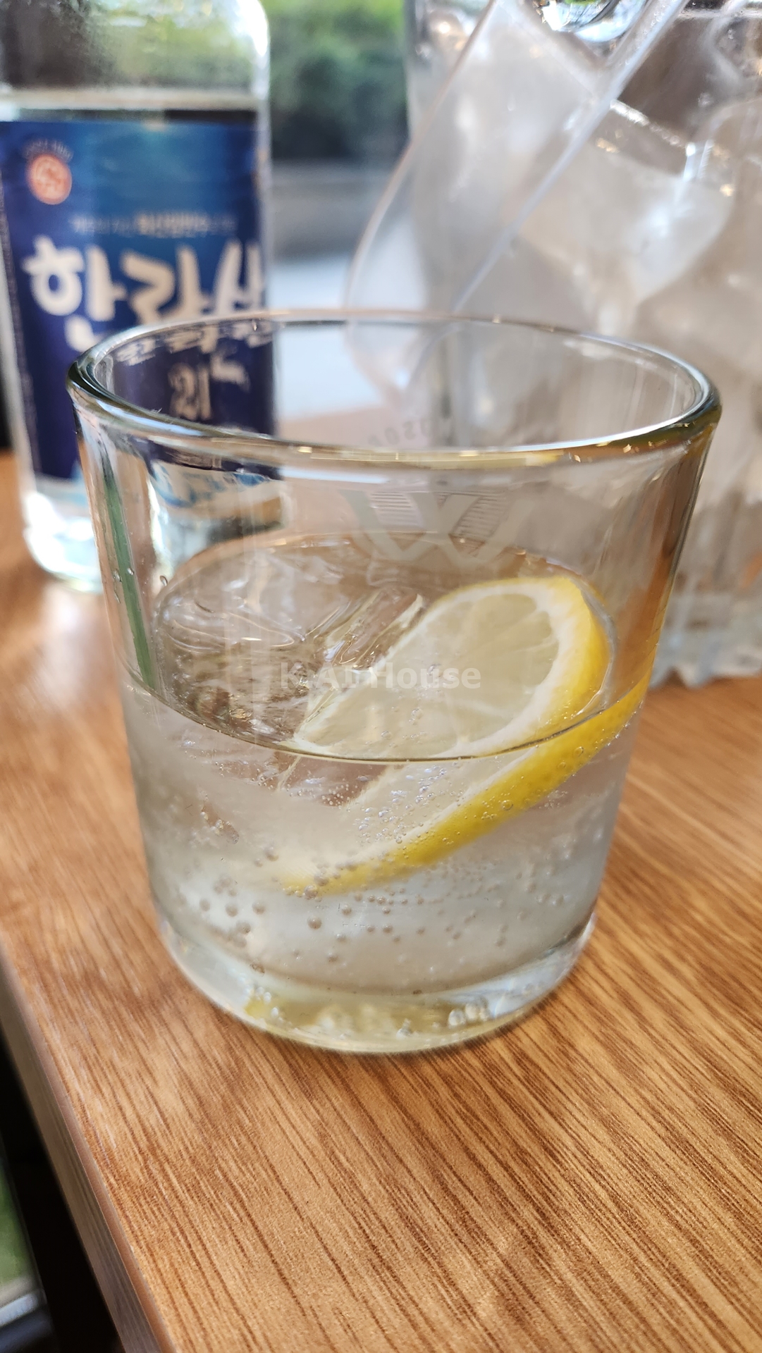 그리고 항상 가족외식 땐 참이슬 소주만 마셨는데 한라토닉이라는 메뉴 구성이 끌리게 되어 한라토닉도 하나 주문하게 됩니다.