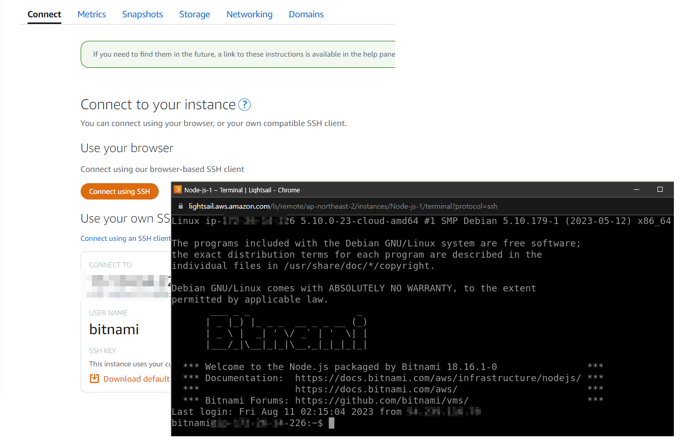 Connect 탭에 Connect using SSH를 통해 서버에 접속할 수 있는데 putty 같은 툴 없이 브라우저 방식으로 SSH 접속이 이루어집니다. 신세계네요