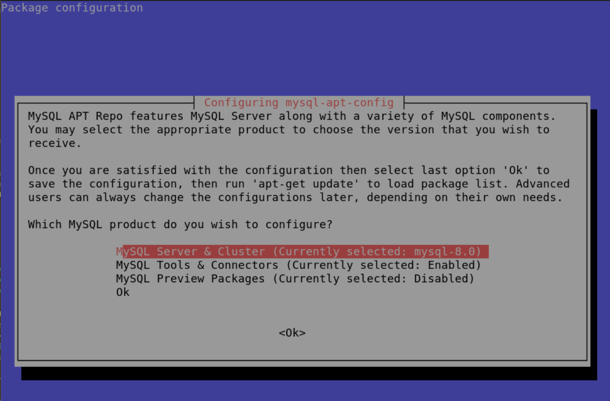 sudo dpkg -i mysql-apt-config_0.8.26-1_all.deb