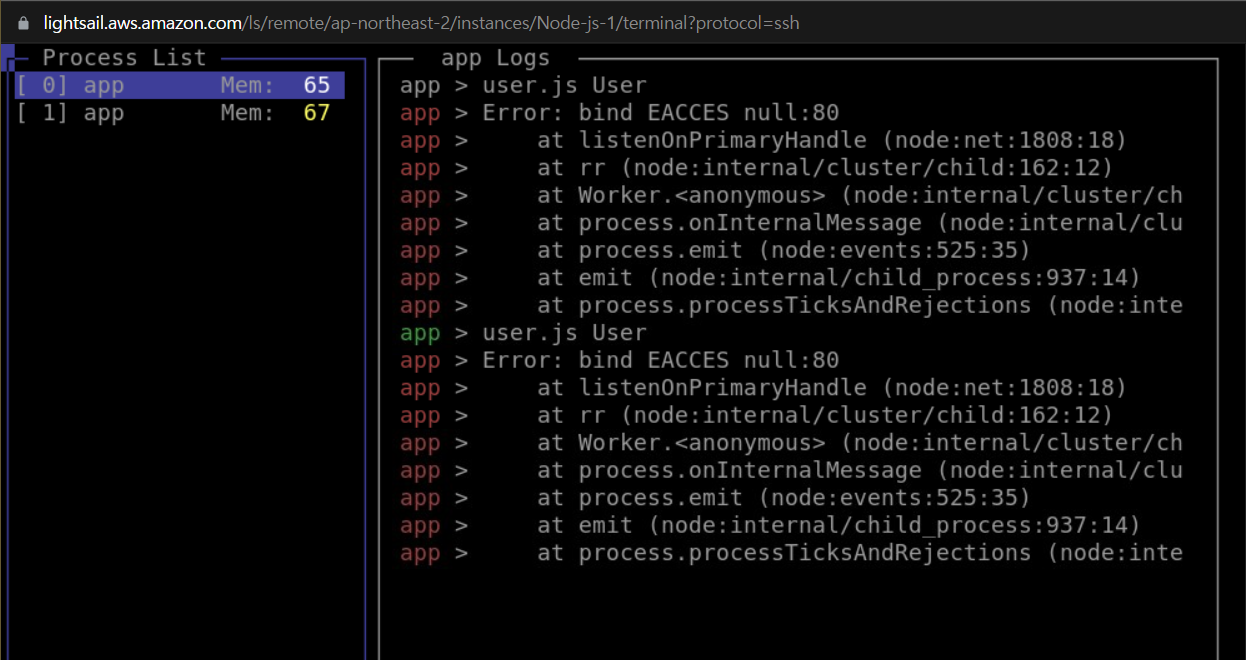 pm2 monit 명령어로 모니터링 상태를 확인해봅니다.