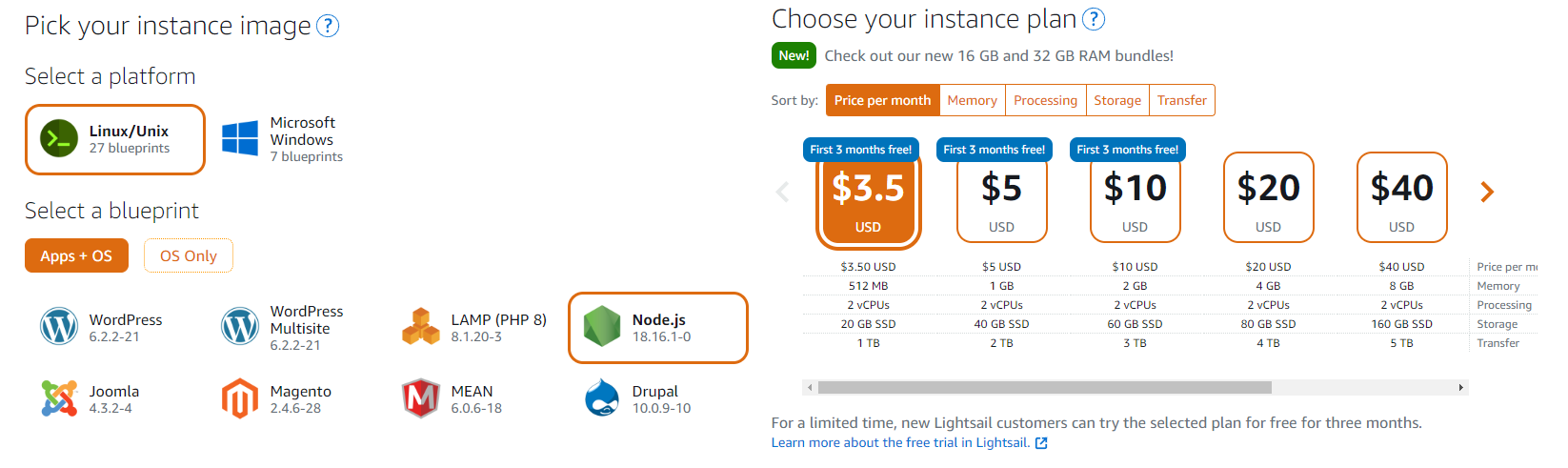 아마존 웹서비스 호스팅을 위한 서비스에는 EC2 와 Lightsail 두가지가 있는걸로 일단은 파악했는데 EC2는 지난번 프록시 서버를 띄우면서 셋업해보았고, 이번에는 Lightsail로 호스팅을 진행하려 합니다.