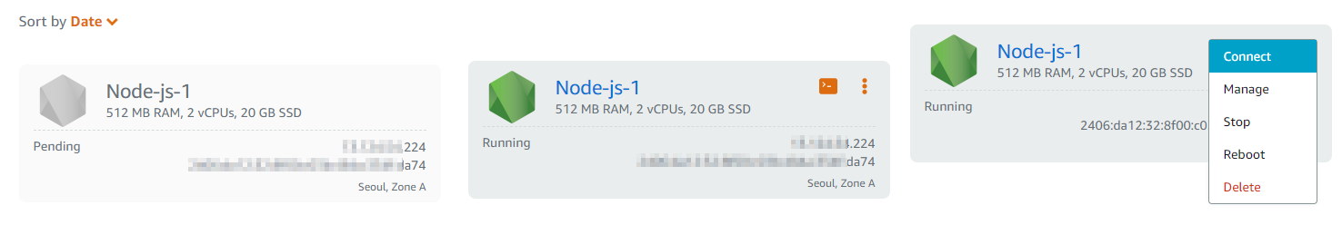 Node-js-1 을 선택해 세부사항 페이지로 들어가봅니다.