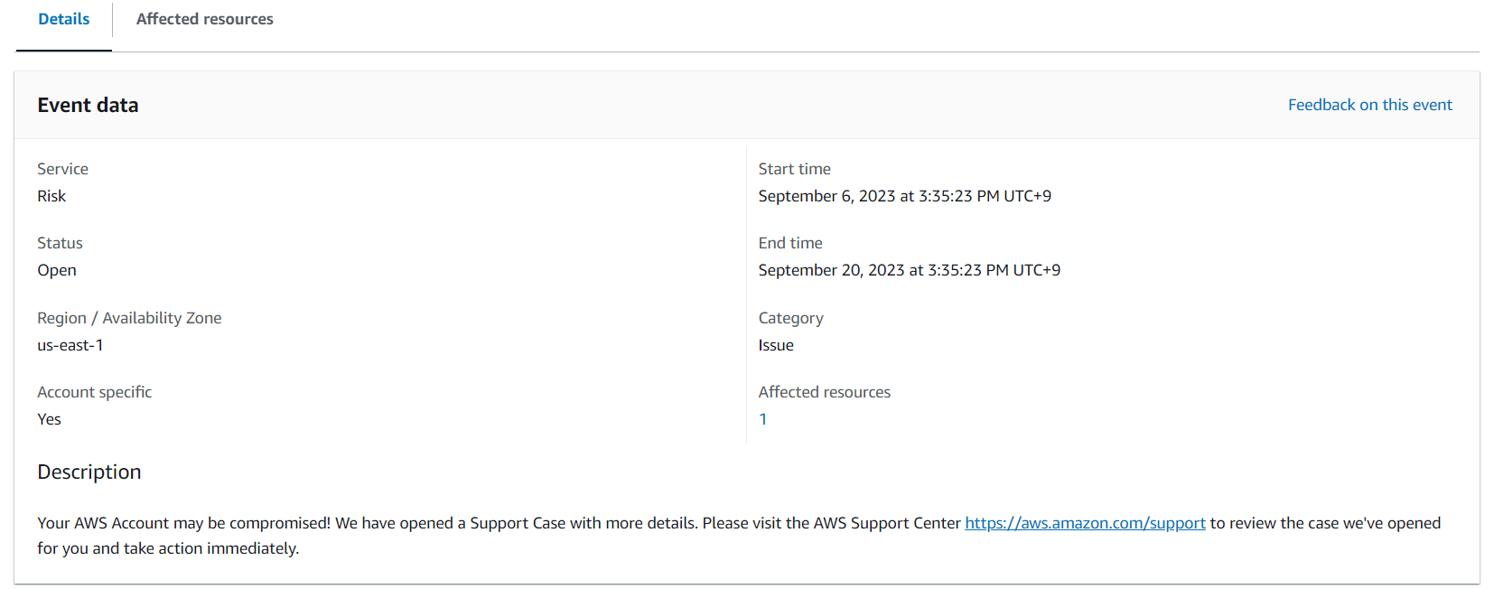 방금 전까지만 해도 없던 사항이어서 이게 무슨일지..? 하며 살펴보니 Access Key 가 노출되었다는 것을 확인하게 되었습니다.