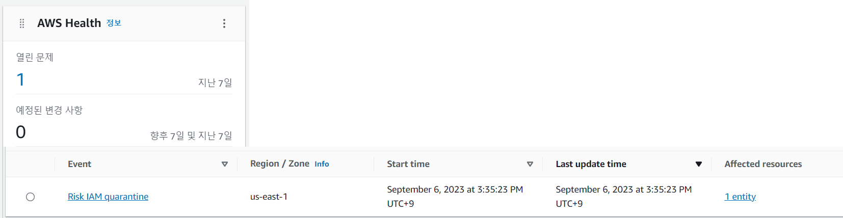 지난 주 AWS Health 에 열린 문제 1이 표기된 걸 확인하게 되었습니다.