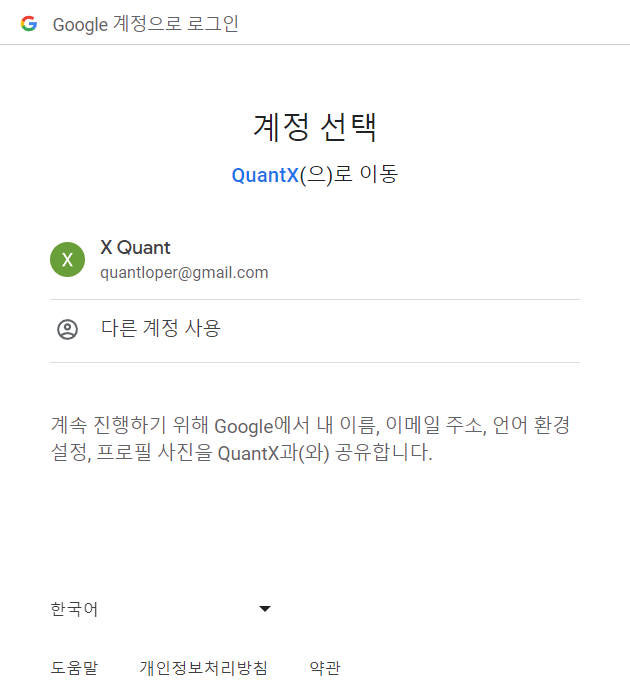 구글로그인 인증 진행