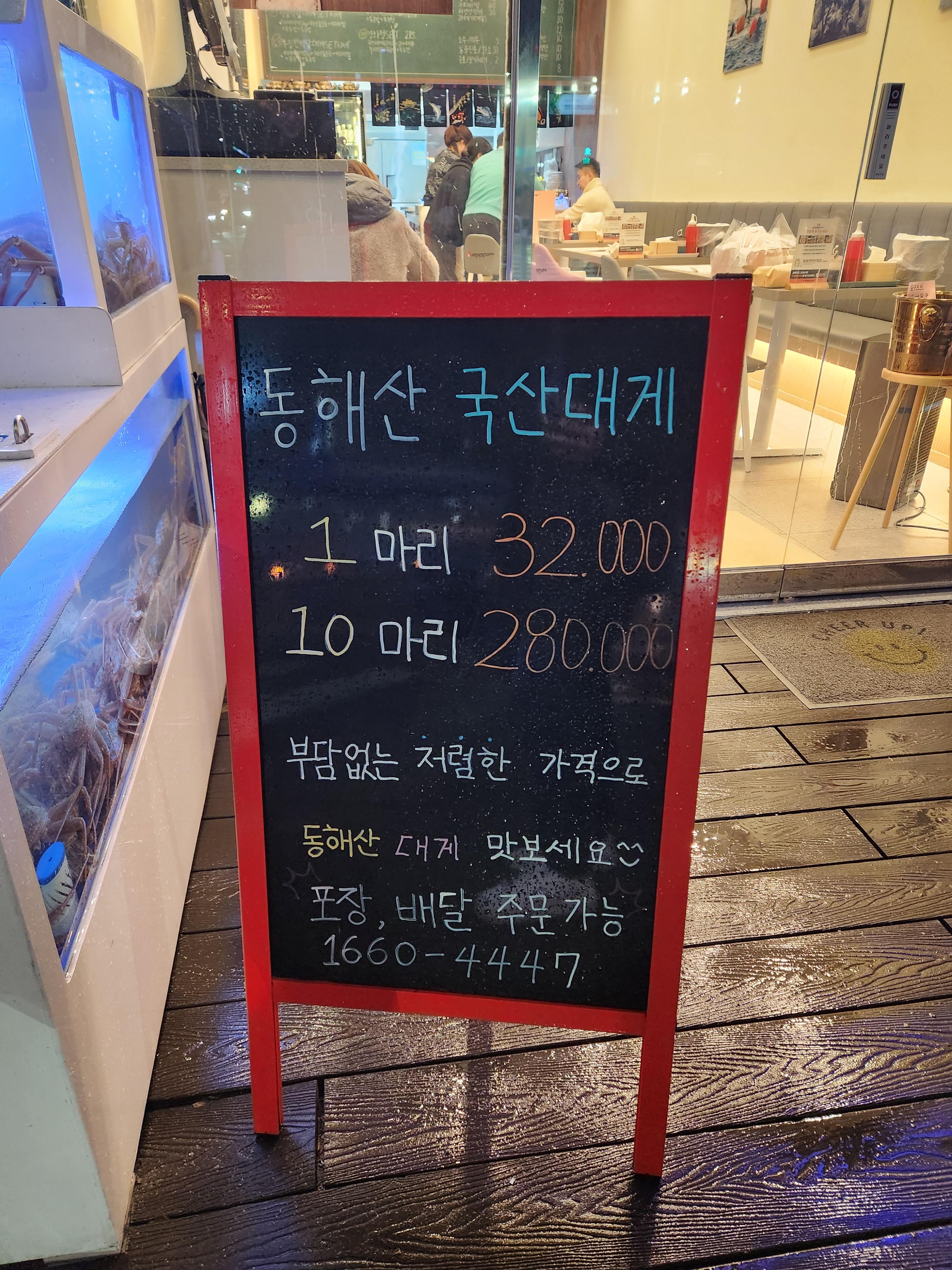 매장 입구앞에 살아숨쉬는 대게들이 물속에 진열되어 있었는데 꽉꽉 채워놓고 있지는 않았어요