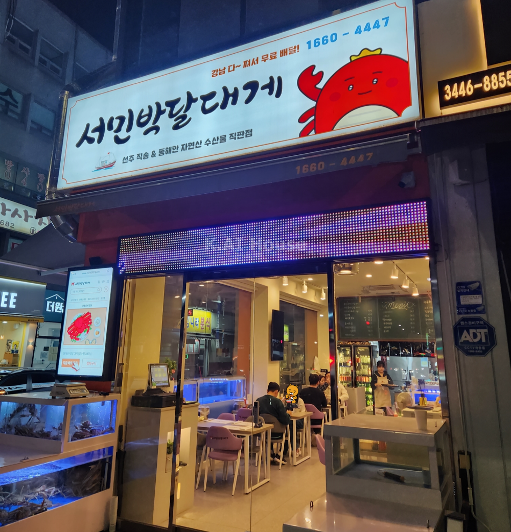 신논현역 1번 출구로 나와서 5분정도 걷다보니 우측에 위치한 서민박달대게 매장이 보입니다.