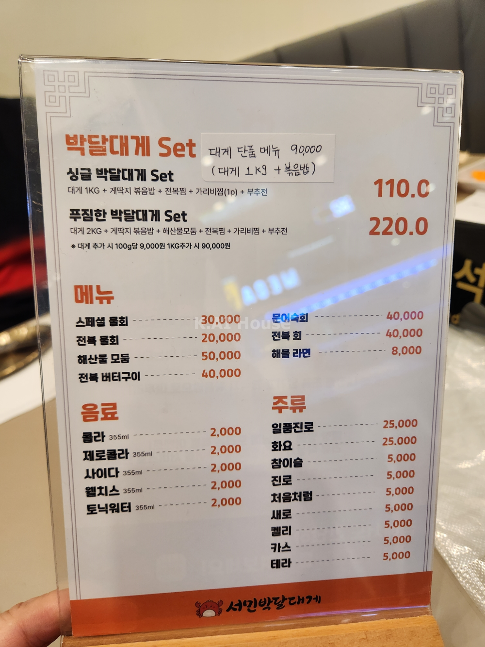대게 1Kg 에 볶음밥 구성인 단품 메뉴가 9만원