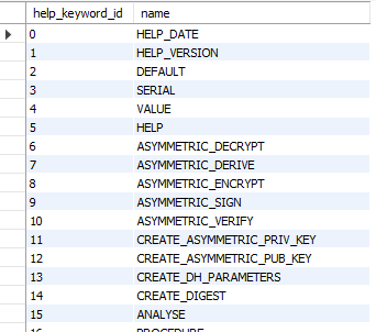 대상 테이블은 msyql에 기본적으로 제공되는 HELP_KEYWORD 테이블로 정했습니다.