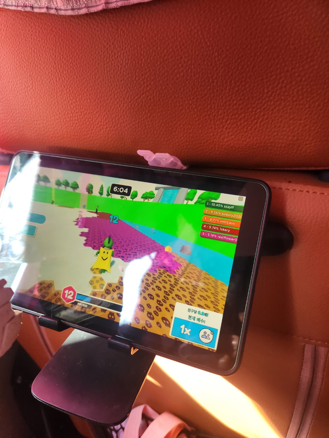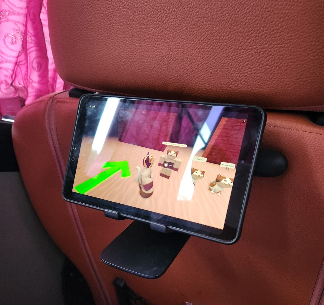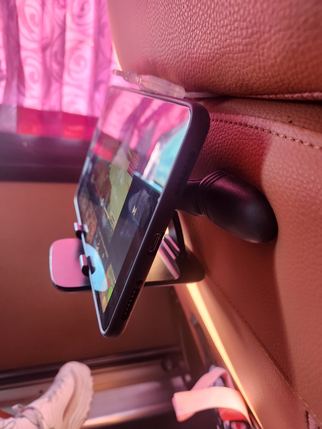 근데 버스의 진동이 문제가 되더군요. 패드를 거치만 해놓았고 꽉 잡아주고 있진 못했기에 진동때문에 좌우로 이동을 하더니 바닥으로 떨어지기 시작했습니다. 진동 때문이어서 마찰력을 늘리는 것보단 고정할 수 있는 무언가가 필요해서 또 머릴 굴려봤는데 의자와 의자헤드 사이에 틈이 눈에 보였습니다. 그래서 그걸 이용해보았습니다.