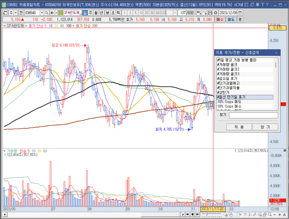4. 차트 메뉴 -> 수식관리자 적용 -> '#옵션 만기일표기' 선택