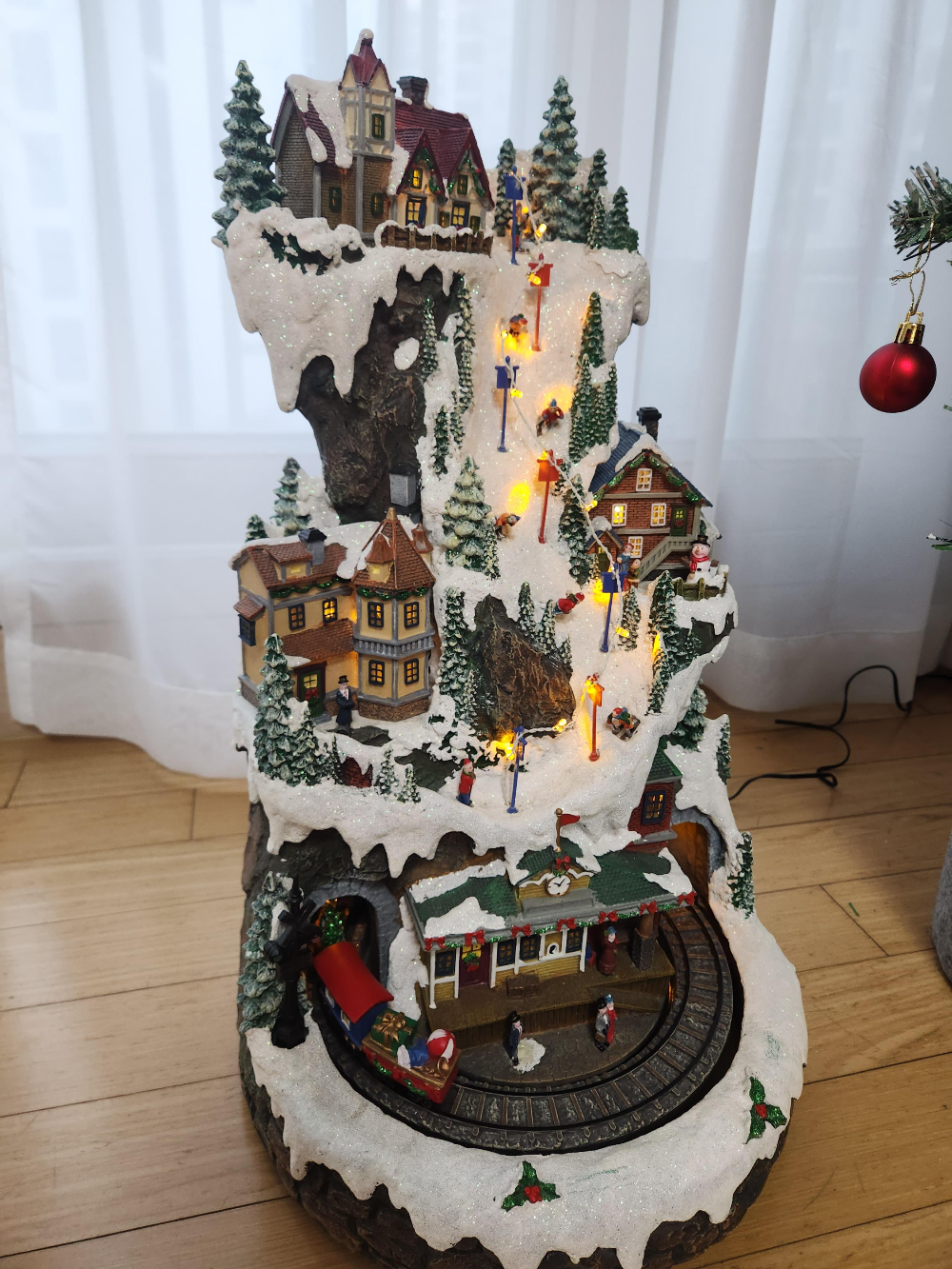 크리스마스 시즌때마다 꺼내던 코스트코 회전기차 마을도 뒤늦게 꺼냈습니다.