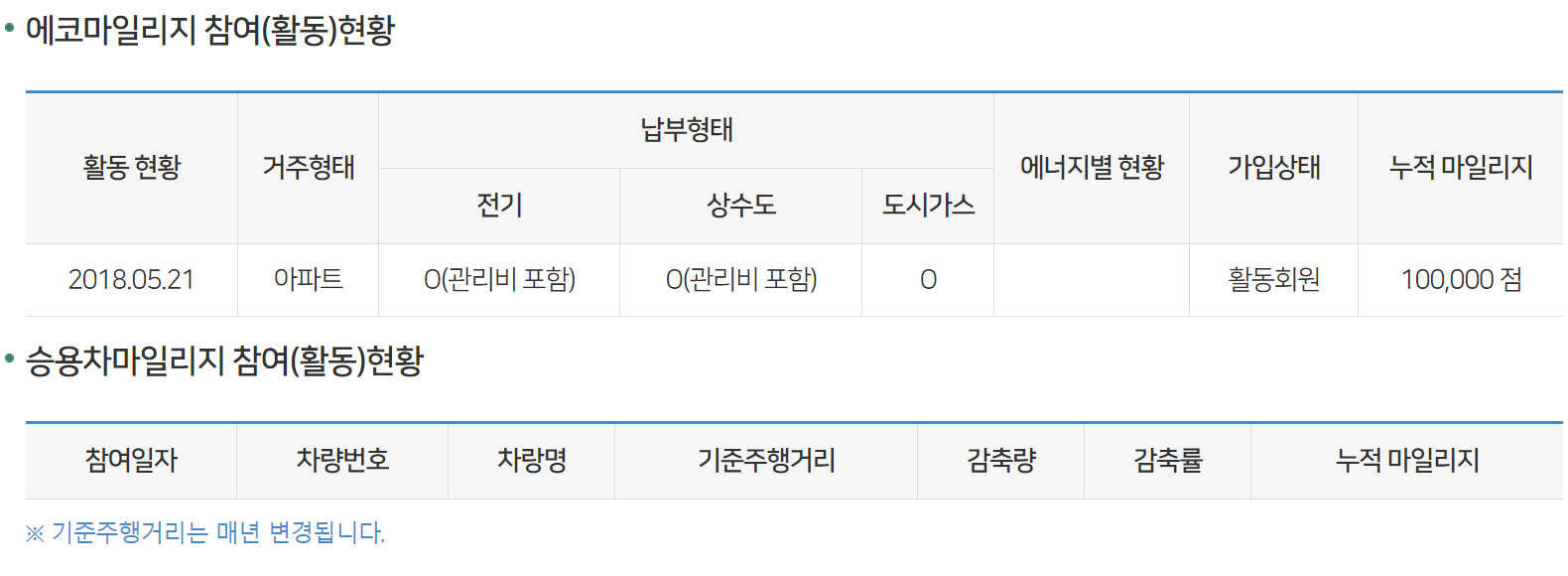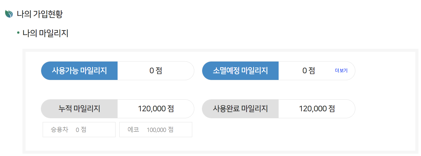 승용차 마일리지는 쌓인게 없었는데 제가 등록을 해놓지 않아서 그랬네요