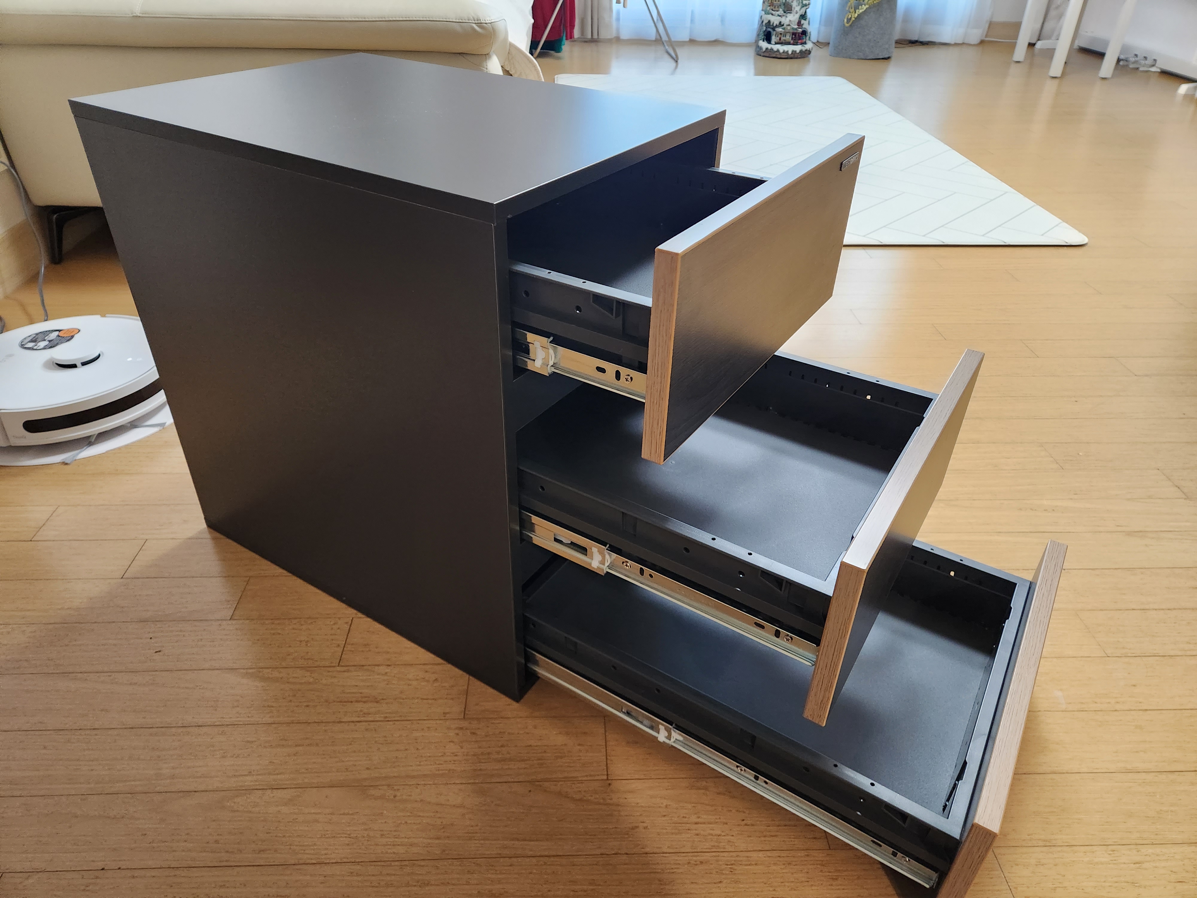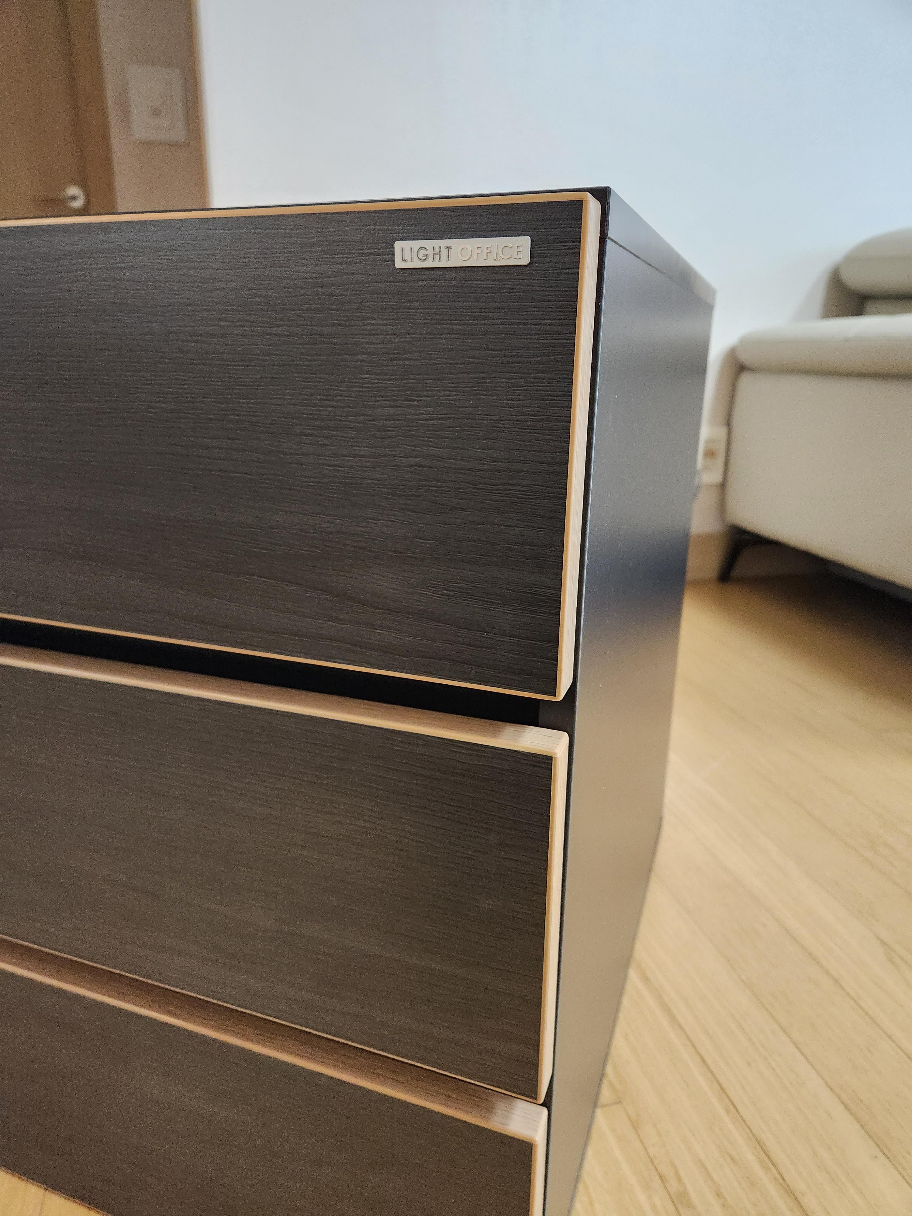 구석구석 디테일한 마감이 좋습니다. 단차가 어긋나거나 하는 부분도 없고 서랍도 부드럽게 잘 열립니다. 사무실마다 사용하는 서랍장이 다르겠지만 사무실용 서랍장과 비슷하지만 훨씬 고급진 느낌입니다. 우리 사무실도 이 서랍장으로 바꿔주면 좋겠습니다.