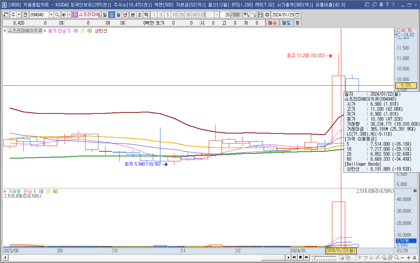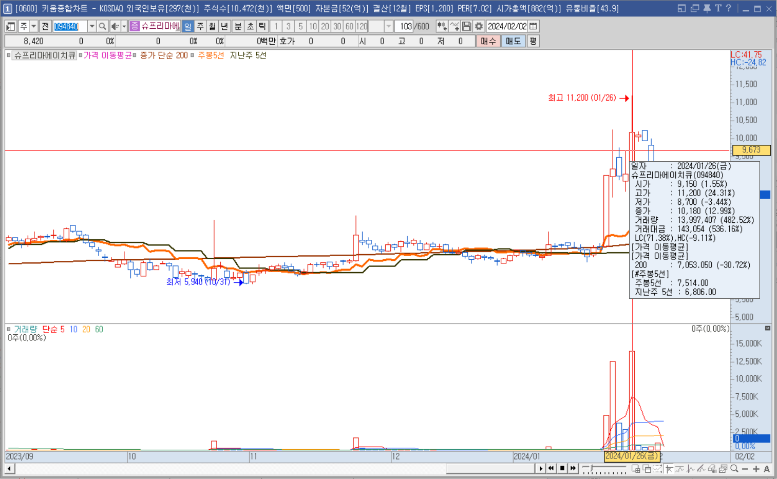 1월 26일이 포함되는 주의 5선 평균선이 7,514로 동일하게 됩니다.