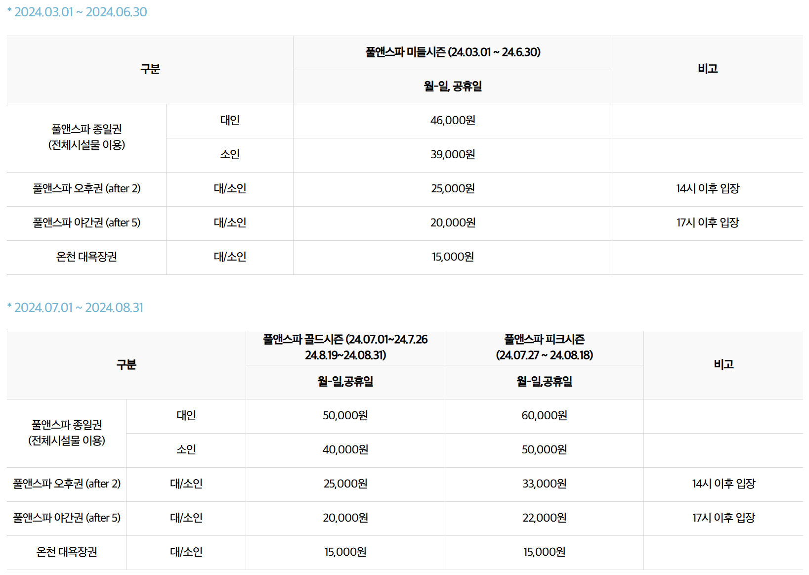 (매표소에서 예약자 확인 후 입장, 2인 외 추가인원 풀앤스파 50%할인 적용)