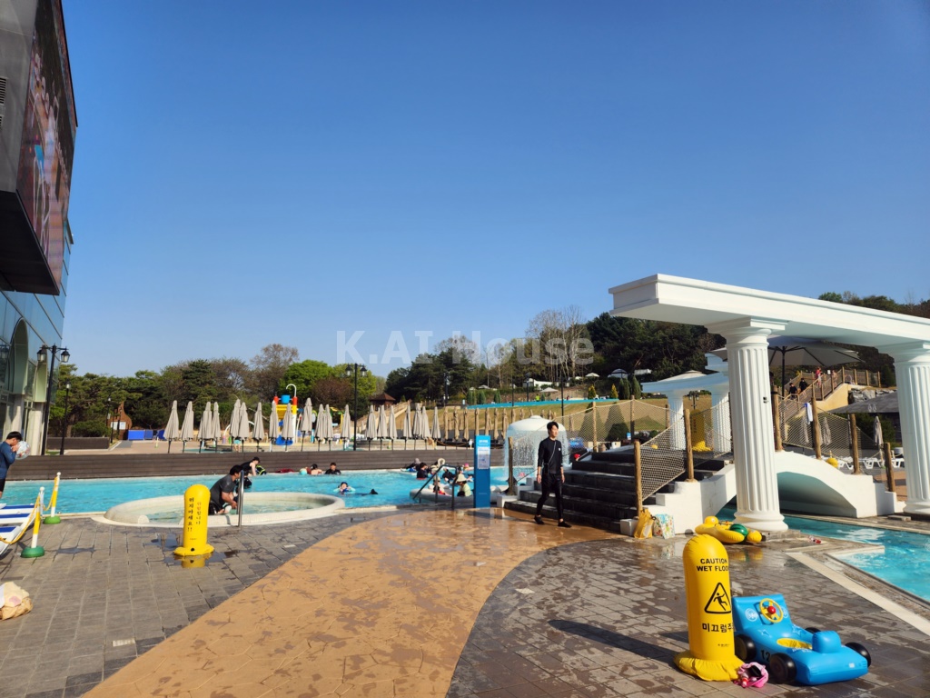 스플래시풀, 바닥분수 등 워터파크와 같은 부대시설도 존재하는데 성수기가 아니어서 즐길수는 없었어요