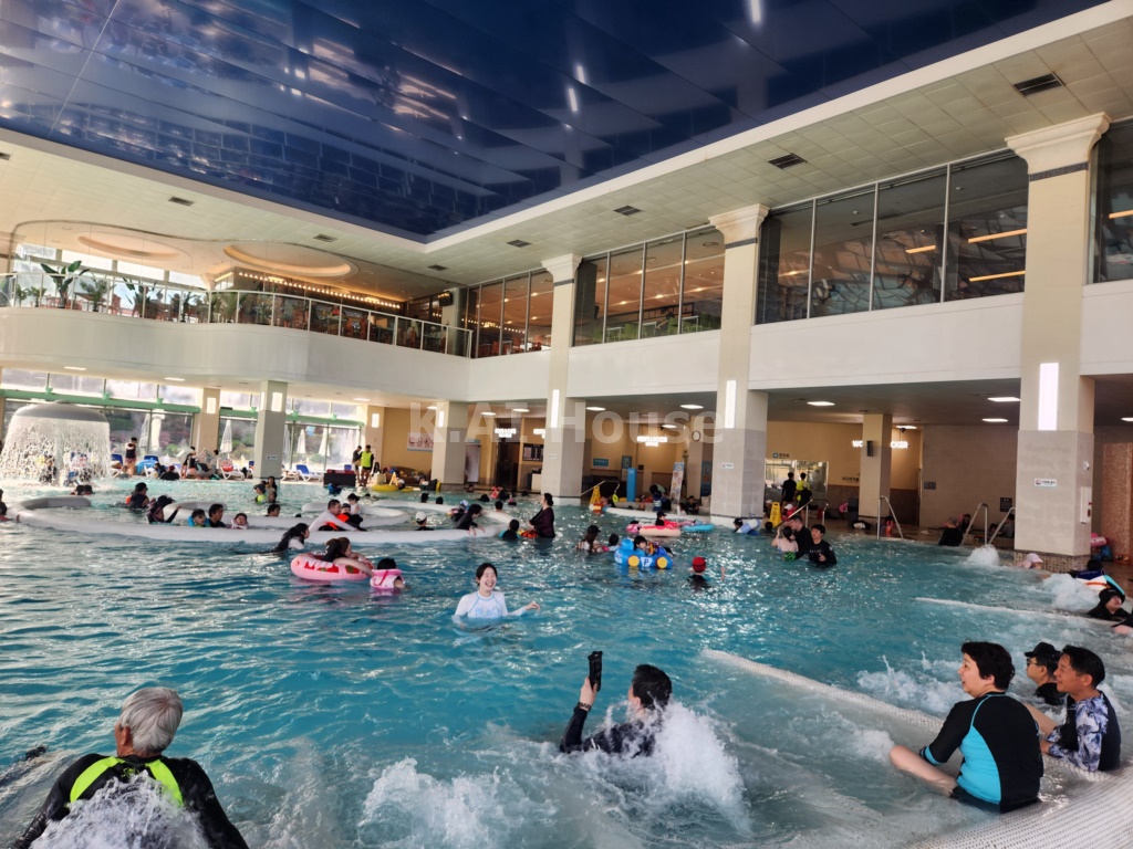 수영복으로 갈아입고 간단히 샤워 후 실내풀장으로 입장합니다.