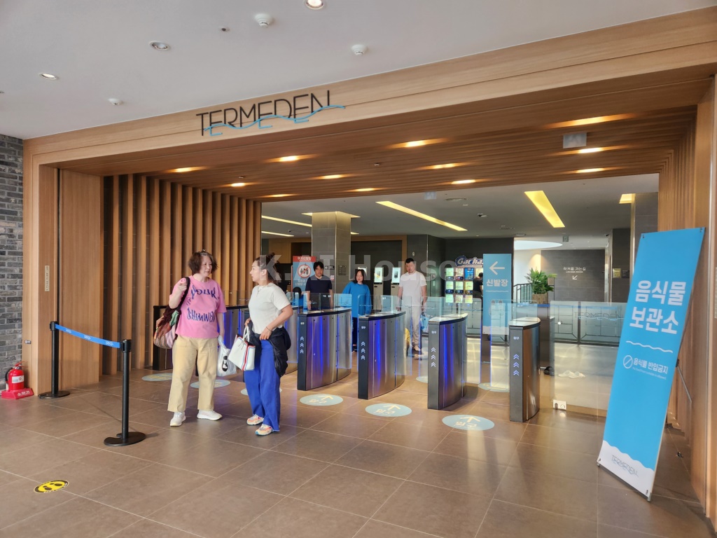 걸어서 도착한 테르메덴 풀앤스파 정문입니다