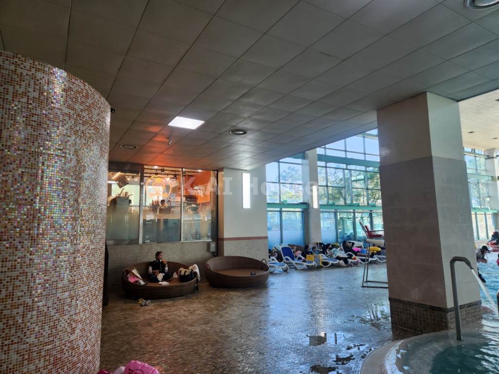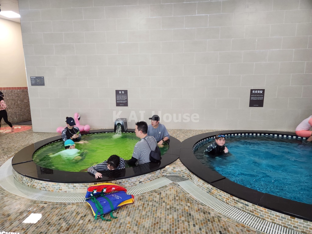 메인 풀장 외에도 사이드로 몸을 녹힐 수 있는 이벤트탕과 유아를 위한 작고 따뜻한 유아풀도 있어요