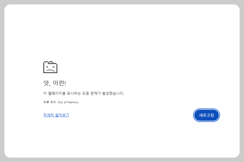 낮추자마자 크롬 사용시 Out of memory 증상이 발생합니다.