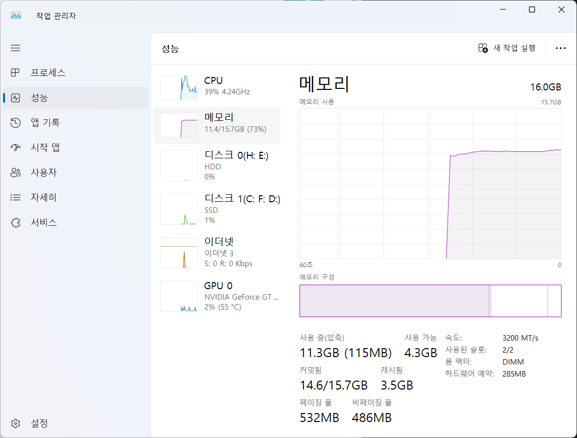 메인 PC 메모리를 32기가에서 16기가로 낮추게 되었는데요