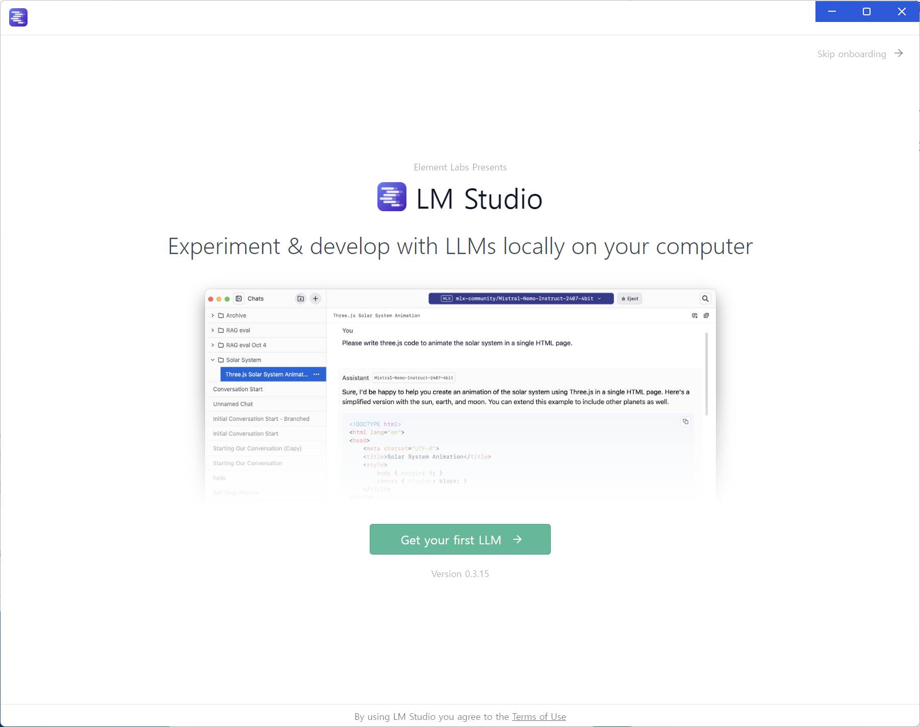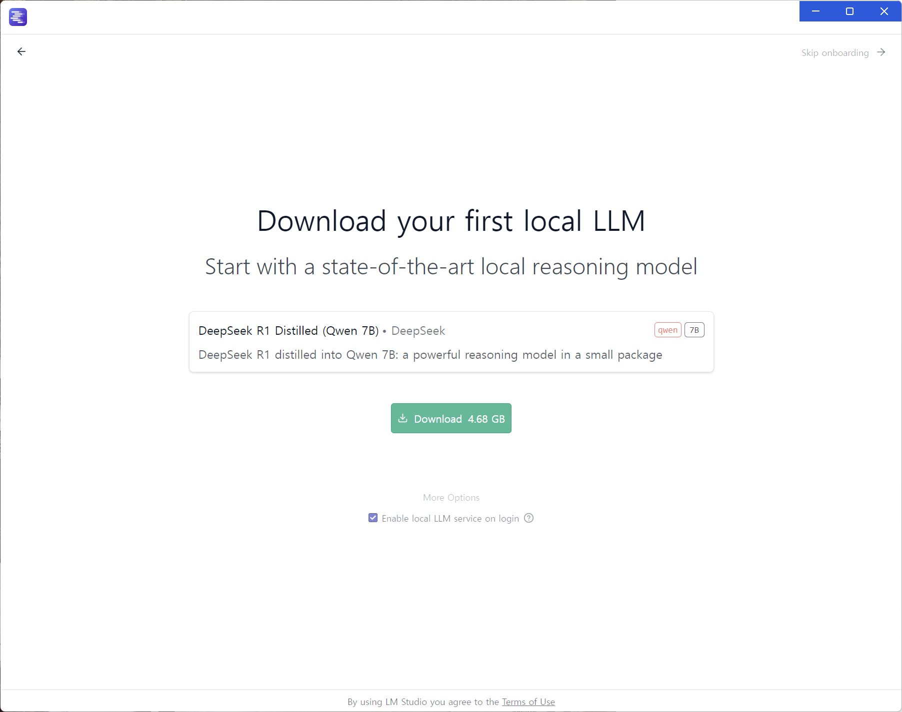 실행화면입니다. Get your first LLM 을 눌러 다음과정을 진행합니다