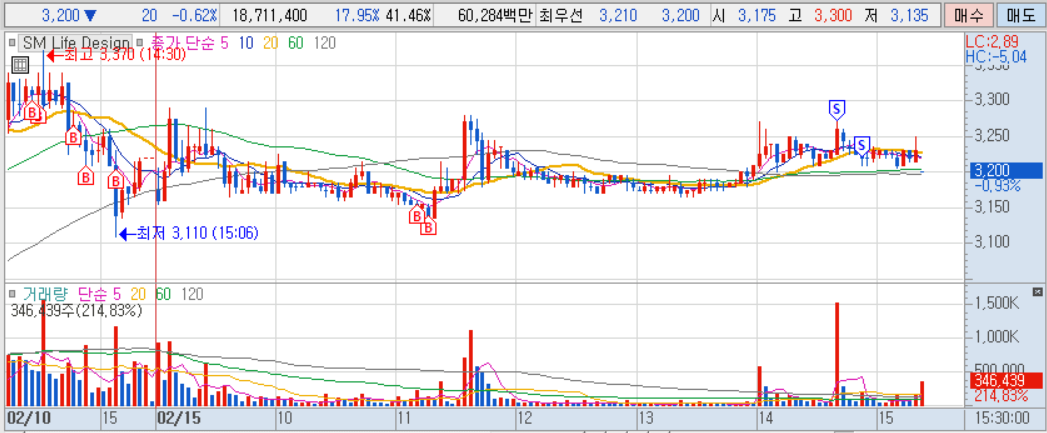 SM LIFE DESIGN은 전일 내려오는 물량을 받아먹고 오늘 또 추매를 한뒤 오전에 수익으로 털고 나올 수 있었는데 욕심이 문제네요. 오후에는 수익으로 대부분을 덜어내고 마지막 물량 또한 본전청산으로 마무리짓고 나왔습니다. 오늘 하루 3번의 반등이 있었는데 마지막에서야 나오다니 참 바보 같...